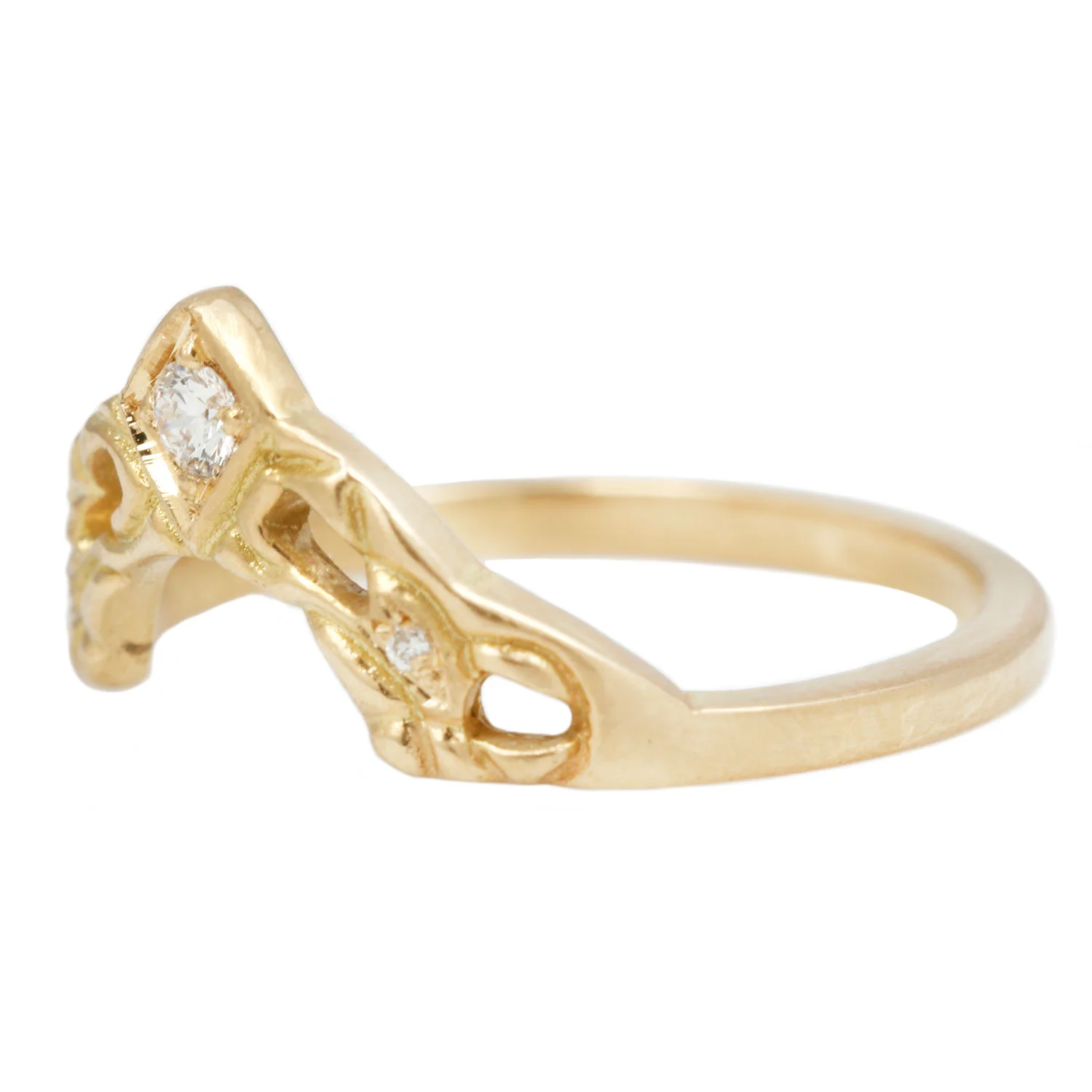 A perfect mixture of regal and organic, this yellow gold ring shines with three diamonds. Majestic enough to be worn on its own, this band also nests perfectly beside the Gray Diamond Josephine Ring.