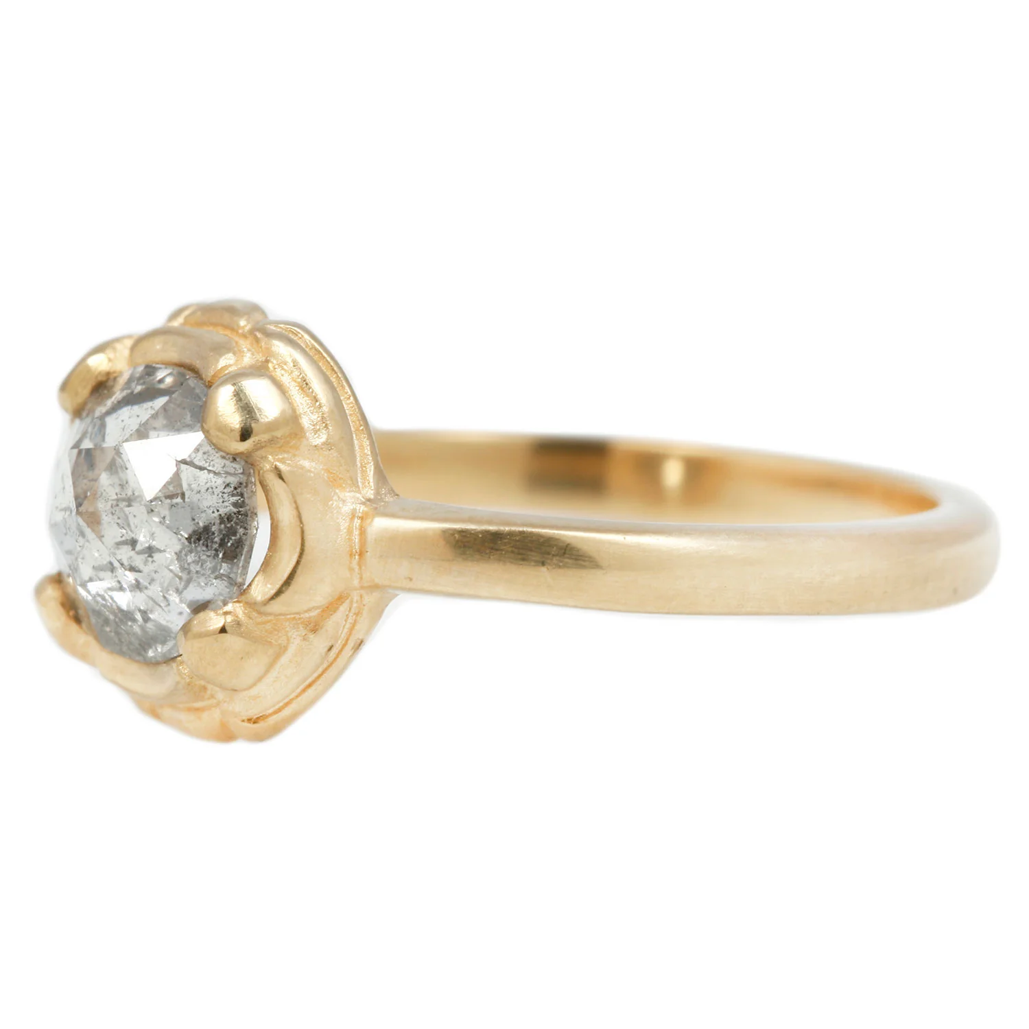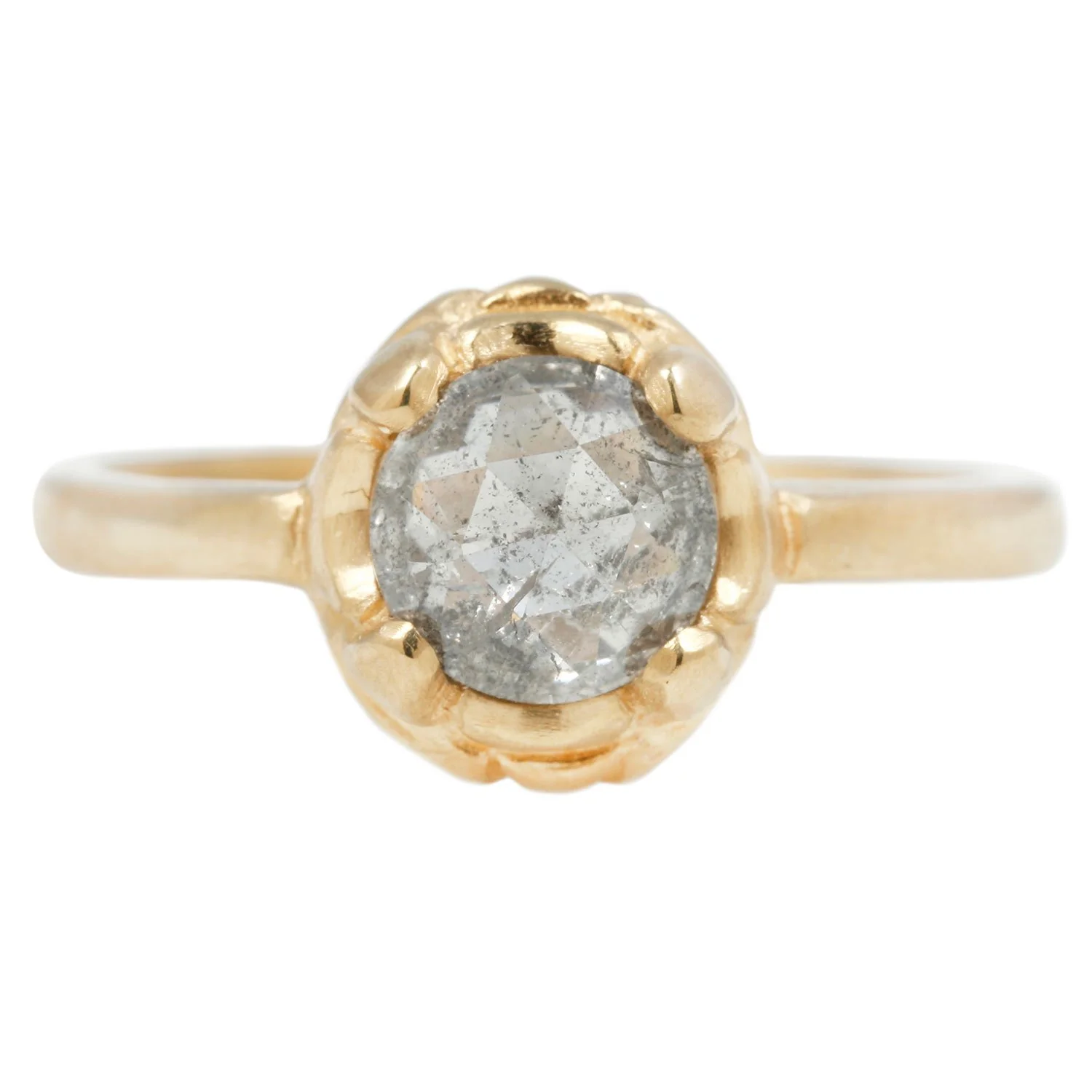 Stone: .96ct Salt & Pepper Rose Cut Round Diamond