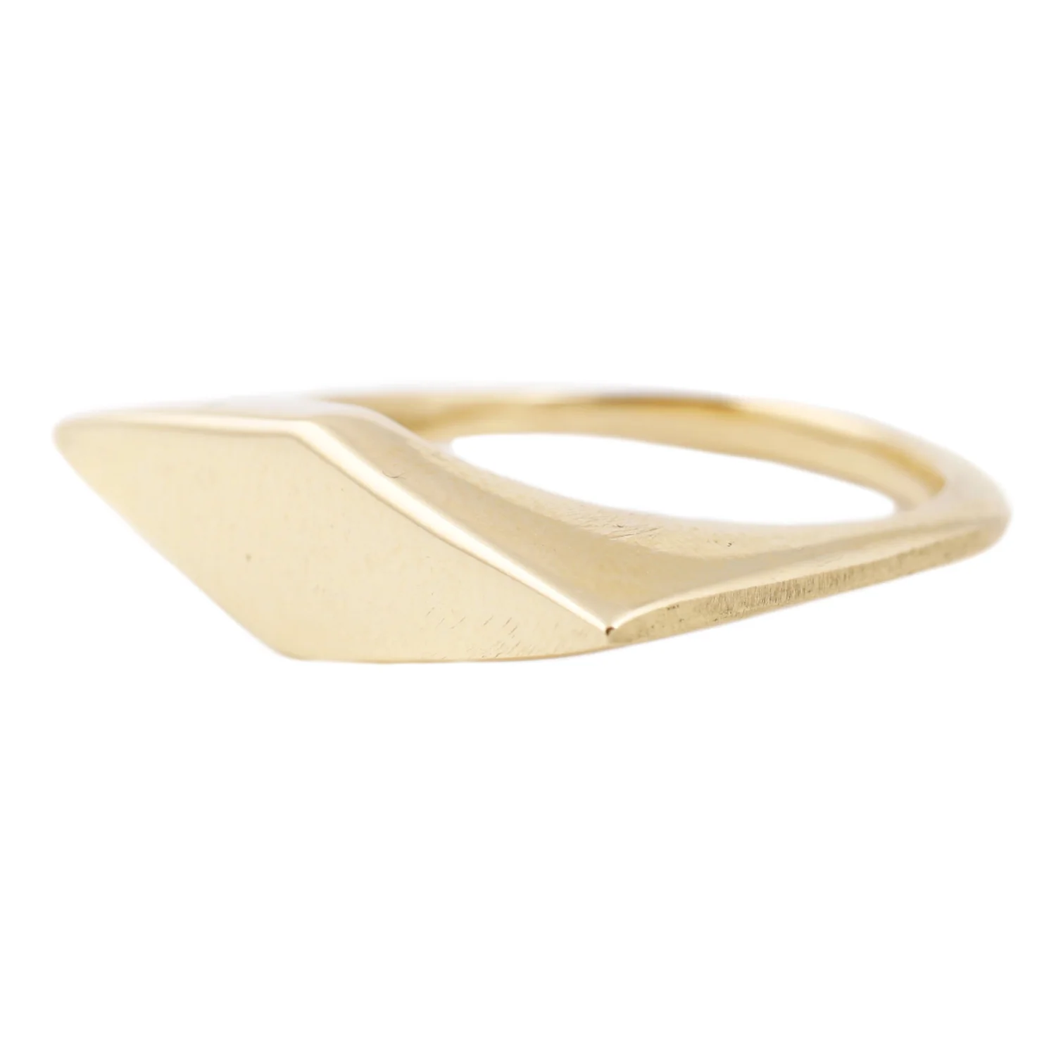 Lauren Wolf's Rhombus Signet is your new everyday signature ring. The rhombus, a shape with timeless geometry, exudes a futuristic glitz in its widened gold form. Commanding yet graceful, its higher profile and polished finish makes it stand out on your hand.